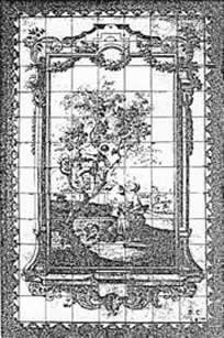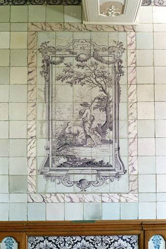 Im dritten Zimmer des Erdgeschosses befand sich ein Fliesenbild in blauer Bemalung. Es zeigte eine Vase in reicher Blütenpracht umgeben von einer Gruppe Hähne und Hühner. Die Vase und die Rahmung des Fliesenbildes waren im Stil Ludwigs XIV. gemalt. Als typisches Merkmal der Epoche bildete im oberen Bereich ein dekorativer kurzer Behang den Abschluss.