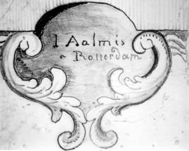(1) Mehrere Mitglieder der Rotterdamer Familie Aalmis waren als „meester-tegelbakker“ Besitzer der „plateel- en tegelbakkerij aan den Schiedamschedijk, westzijde, protocol No. 1405“. Am 24. Dezember 1691 kaufte Pieter Janszn. Aalmis (* 1648 - + 1707) die Werkstatt von den Erben des François van Lier. Pieter Janszn. Aalmis hatte schon einige Jahre die Werkstatt geleitet. Jan Pieterszn. Aalmis (* 1674 - + 1755) folgte seinem Vater Pieter Janszn. Aalmis 1707 in der Leitung der Werkstatt. Jan Aalmis jr. (* 1714 - + 1799) betrieb die Werkstatt mit seinem Bruder Jan Bartholomeus Aalmis (* 1725 - + 1786) seit dem Tod des Vaters. Als Jan Bartholomeus 1786 starb, wurde Jan alleiniger Inhaber. Er verkaufte am 10. September 1787 die Werkstatt an Laurens Verwijk und starb am 30. September 1799.