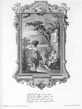 Jan Aalmis entnahm die Rahmungen der Ornamentstichfolge „Die zwölf Monate“ von Johann Esais Nilson (8) aus dem Jahre 1766.