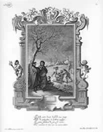 Alle vier Graphiken tragen die Beischriften Pierre Aveline del. Sculp. Bouché pinx., erläuternde Texte von Moraine und den Vermerk a Paris chez Charpentier rue St.jaques au coq.