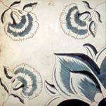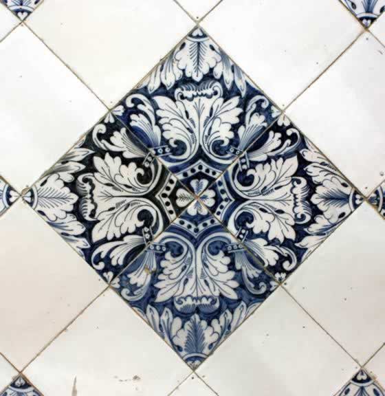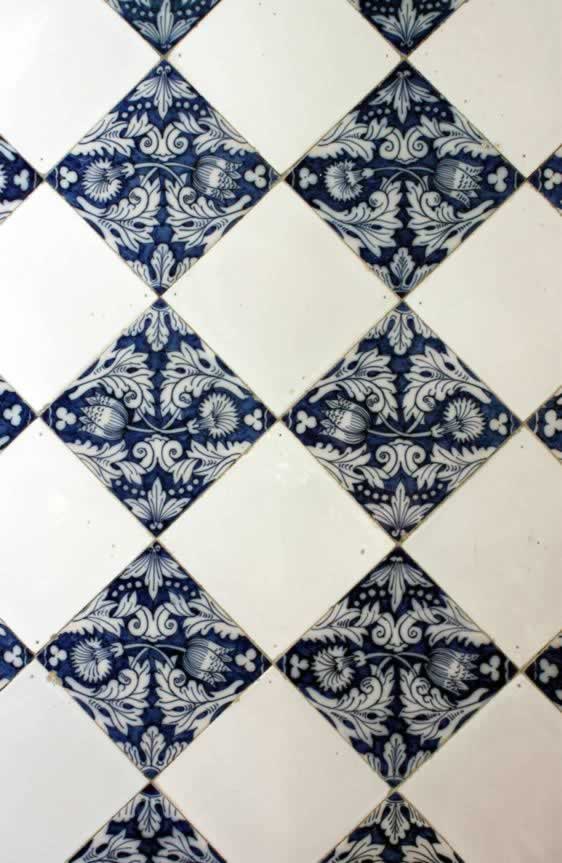 >Violieren< sind in diesem Raum diagonal angesetzt. Vier Fliesen ergeben jeweils das Zentralmotiv. >Kievitseitjes< bilden die Rahmungen.
