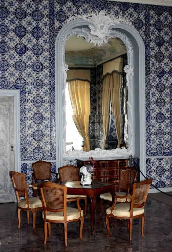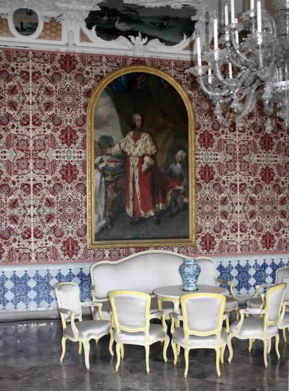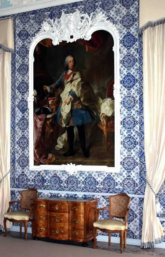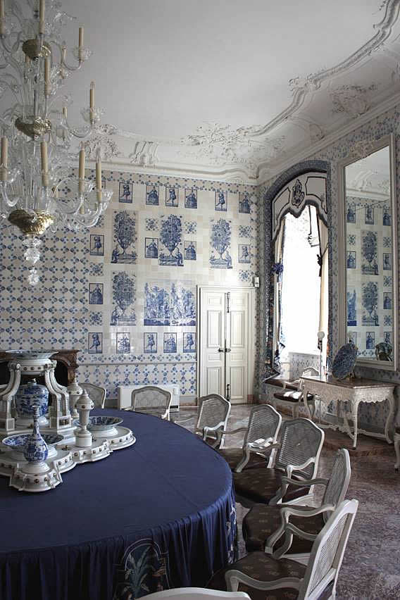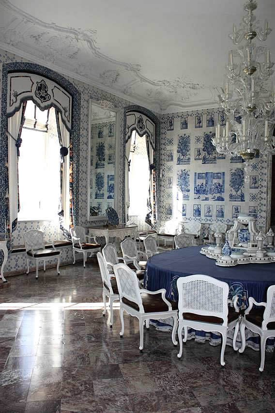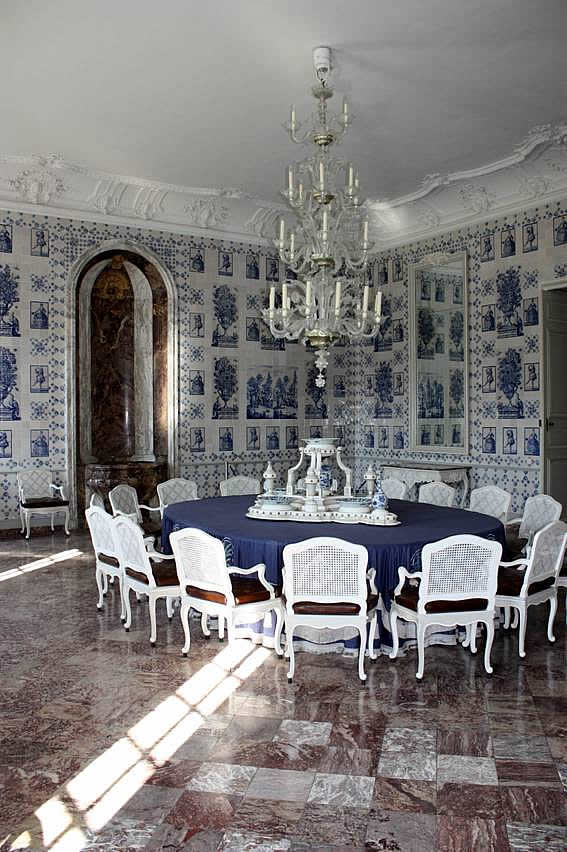 Zu fürstlichen Diners stand spätestens seit Mitte der 1740er Jahre der mit seinen weiß-blauen Fliesendekorationen prunkende Sommerspeisesaal zur Verfügung.