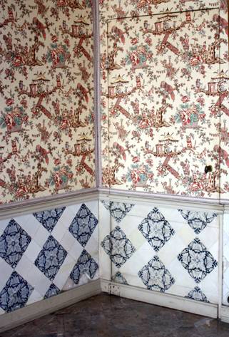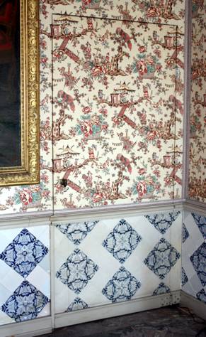22 23Das Fliesenmuster wurde auf zwei sogenannten ‚Tapetentüren’ als Bemalung weitergeführt.