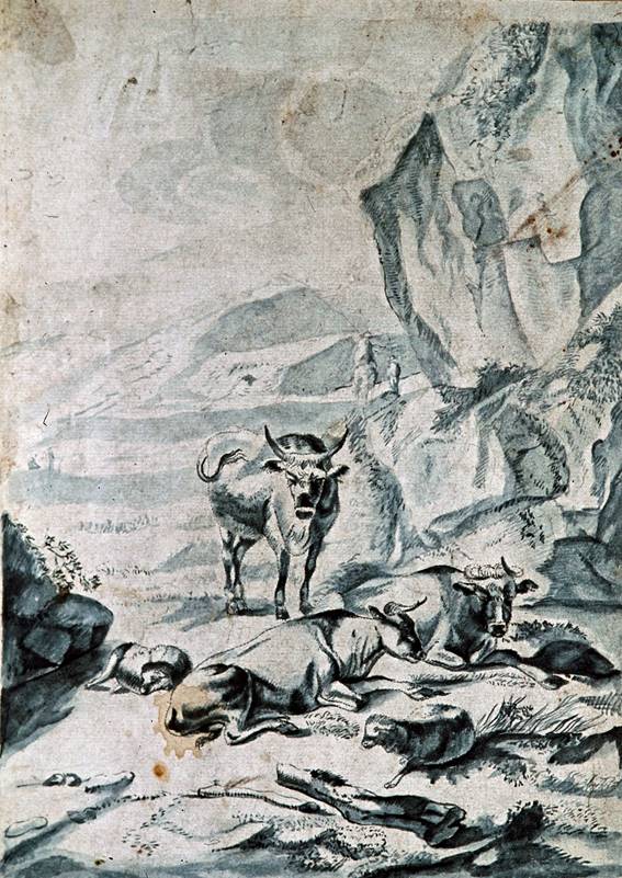 Vervaardiger: Nicolaes Pietersz. Berghem, naar eigen ontwerp.
