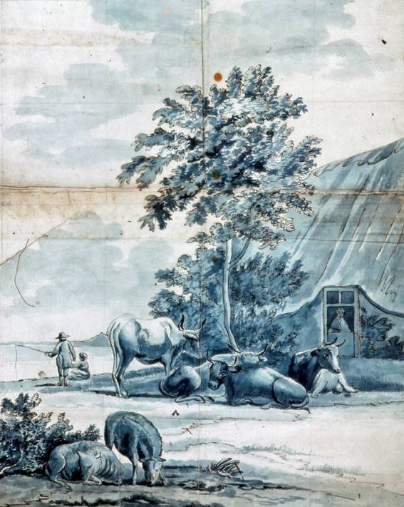 Landschappen met dieren en mensen (serietitel). Serienummer 1/4.