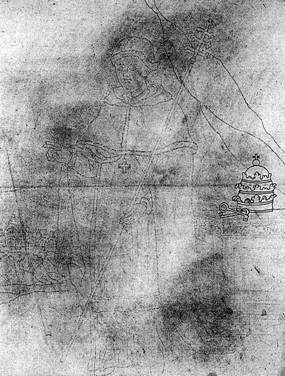 1b Durchstaubschablone Inv.-Nr. 3361 wie 3360; Jedoch kein Fliesenraster; nur Tiara und Schlüssel sind gezeichnet
