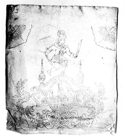 pentekeningen in bruin, werden blauw of paars ingeschilderd, maar er komen ook