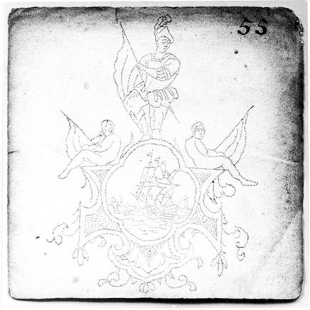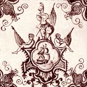 Pluis schrijft deze tegels toe aan de Rotterdamse tegelbakkerij Schiedamsedijk /