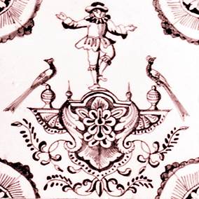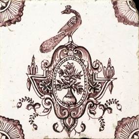 9. Pauw op cartouche, paars, hoekmotief: kwartrozet (2)