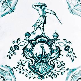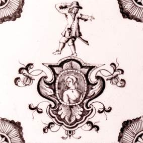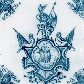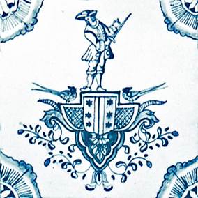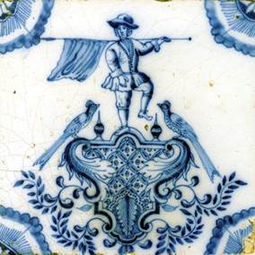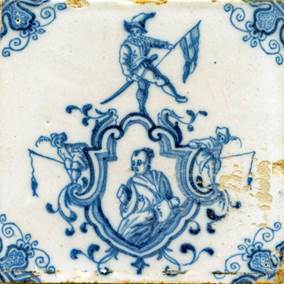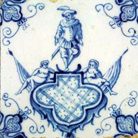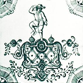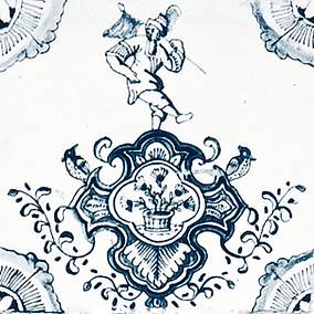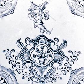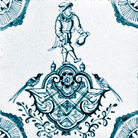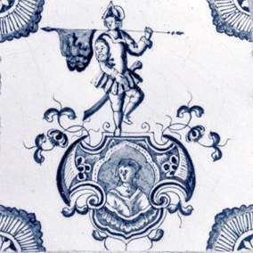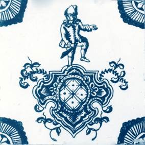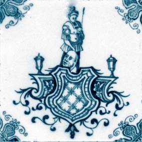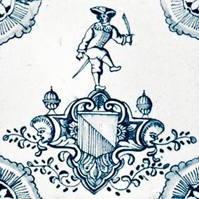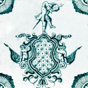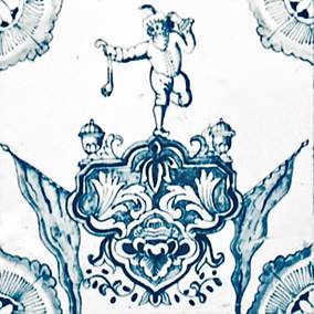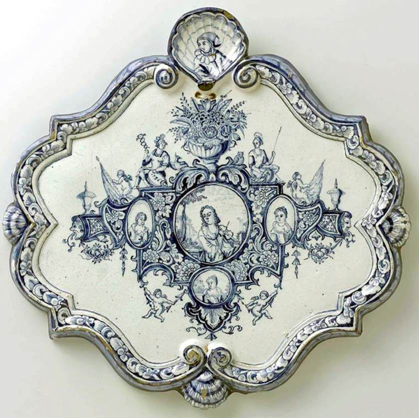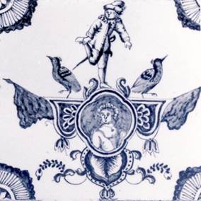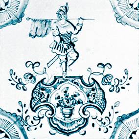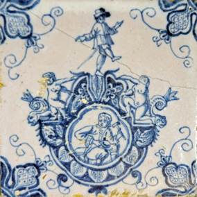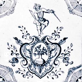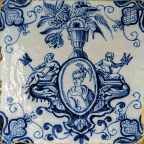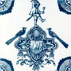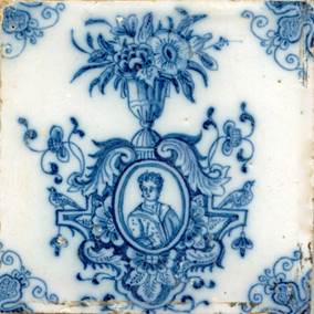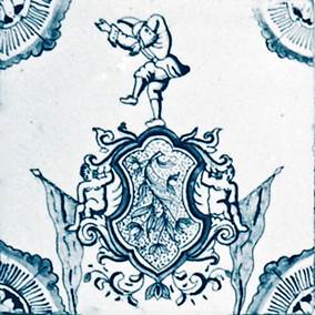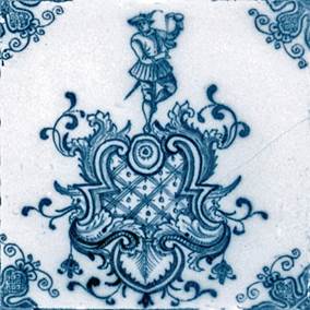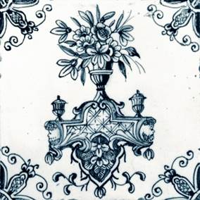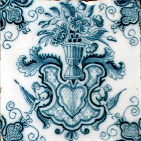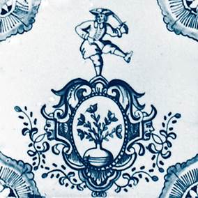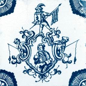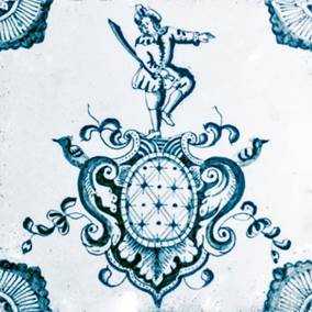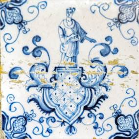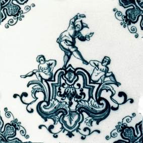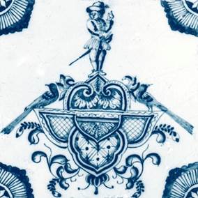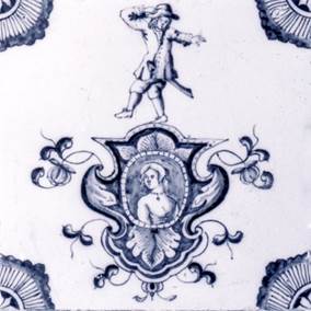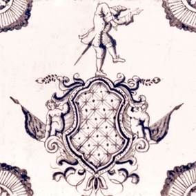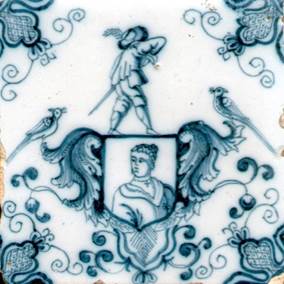1. Kunstenmakers op cartouche, blauw, kwartrozet (1)