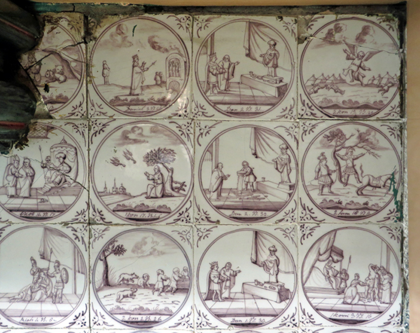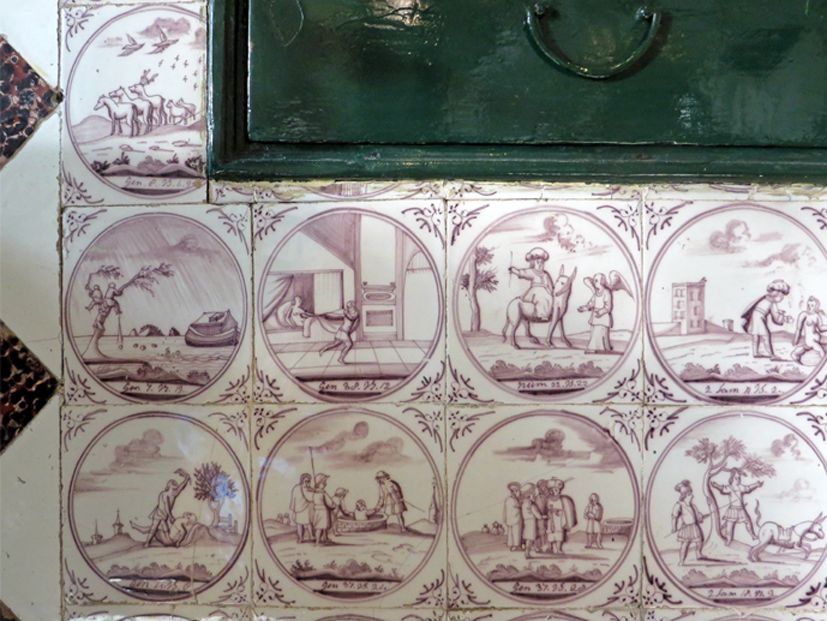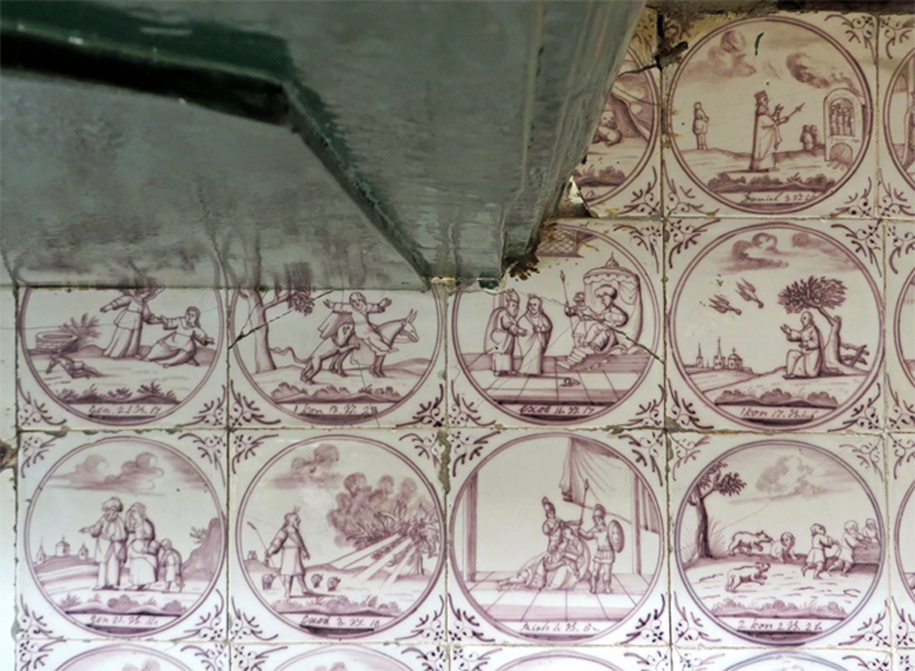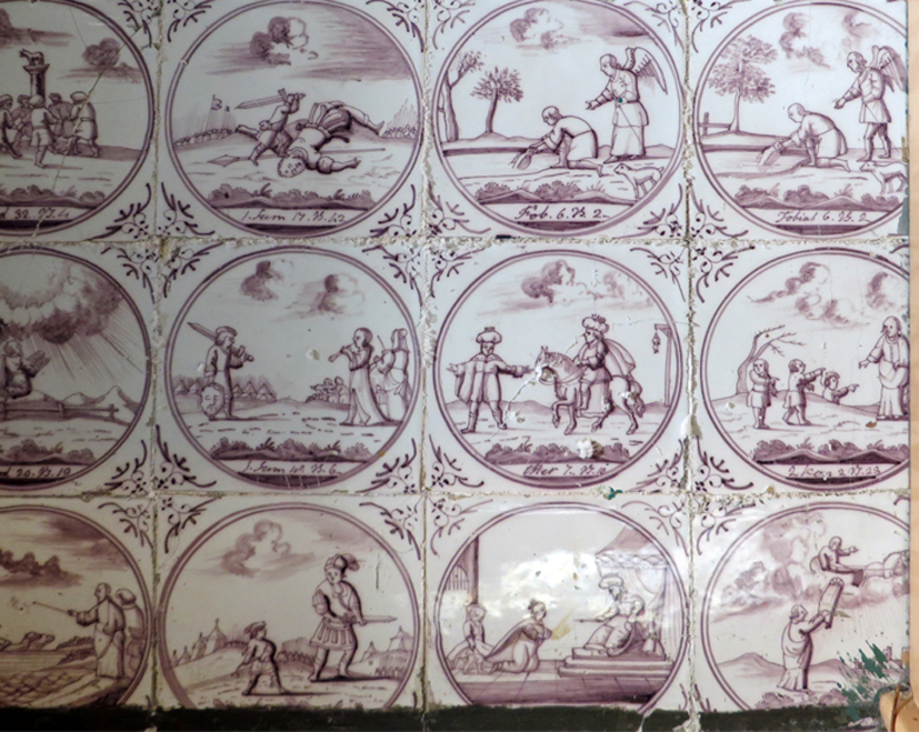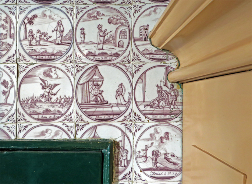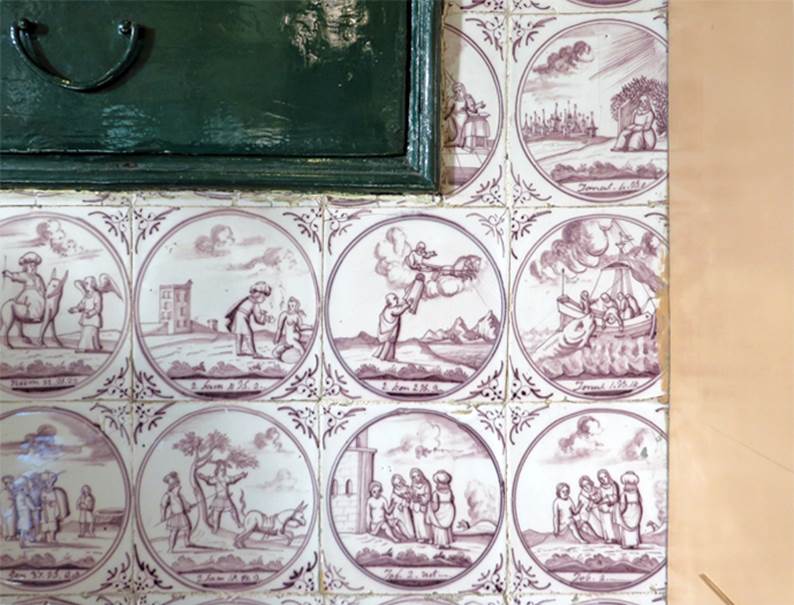 Rotterdamse bijbeltegels bij de open haard, de linkerkant / Rotterdamer Bibelfliesen am offenen Kamin, linke Seite.