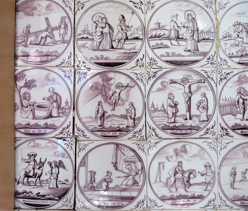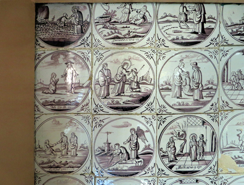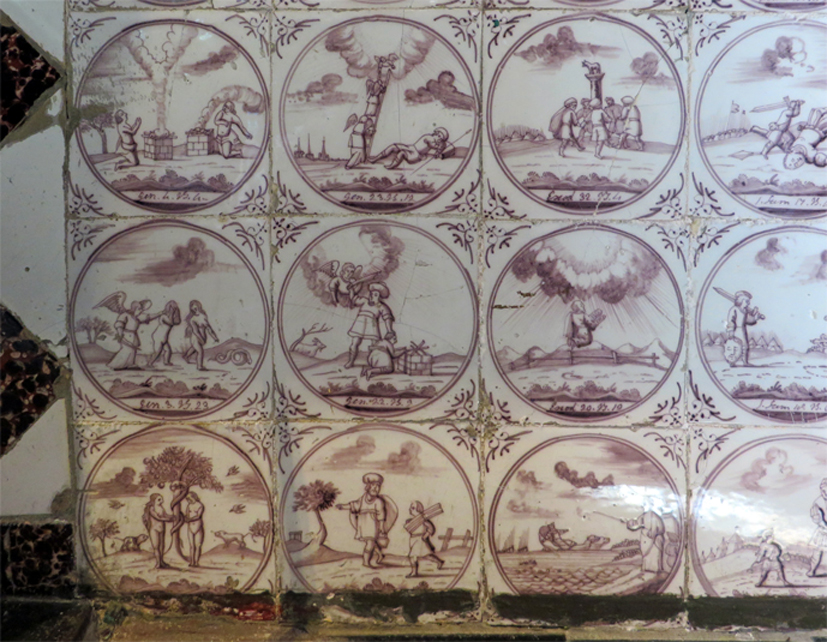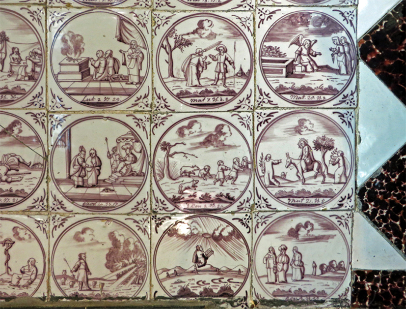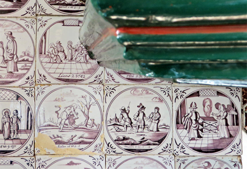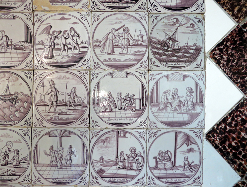 Rotterdamse bijbeltegels bij de open haard, de linkerkant / Rotterdamer Bibelfliesen am offenen Kamin, linke Seite.