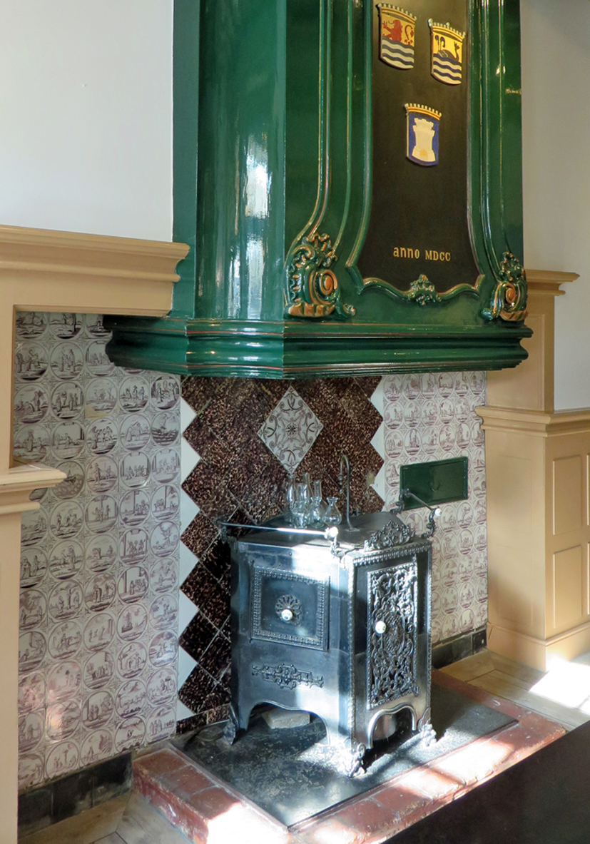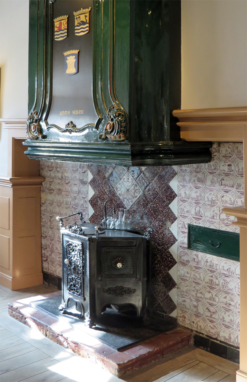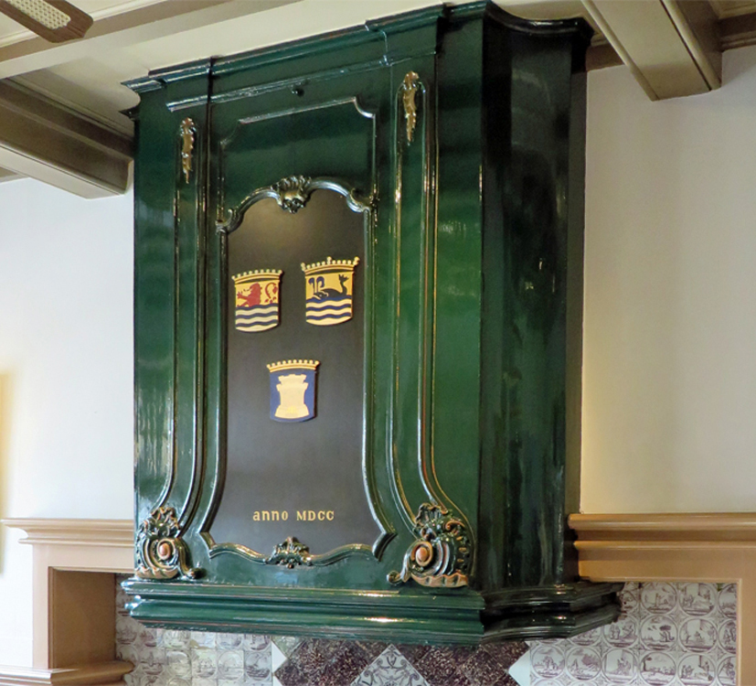Auf der Kaminhaube sind die Wappen von Zeeland, Walcheren und Domburg zu sehen.