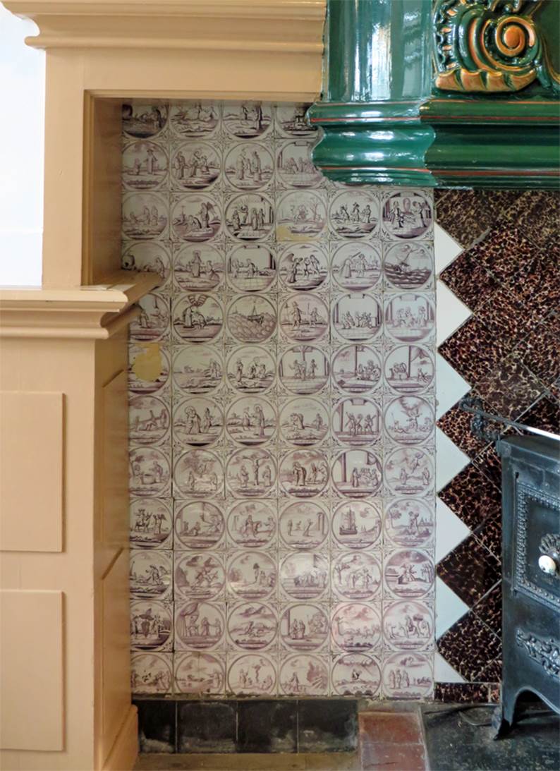 Rotterdamse bijbeltegels bij de open haard, de rechterkant / Rotterdamer Bibelfliesen am offenen Kamin, rechte Seite.