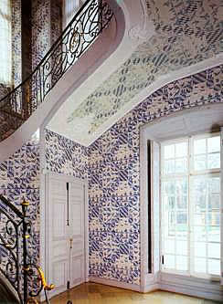 Die Bildfliesen im Treppenhaus von Schloss Falkenlust zu Brühl