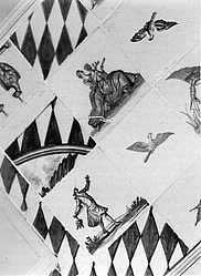 Abb. 12 Landschaftsvedute mit aufgeklebten Vorlagen für die Treppenhausfliesen.