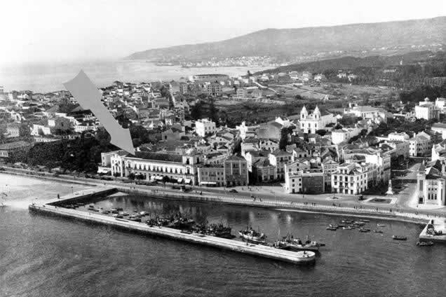 Figueira da Foz, auch kurz Figueira genannt, ist eine Stadt im Distrikt Coimbra in Nordportugal. Sie liegt an der Mündung des Flusses Mondego in den Atlantischen Ozean, ca. 40 Kilometer westlich von Coimbra. Die Stadt ist landwärts umgeben von Hügelketten der Serra da Boa Viagem. Der Pfeil weist auf den Palast ’CASA DO PAÇO’.