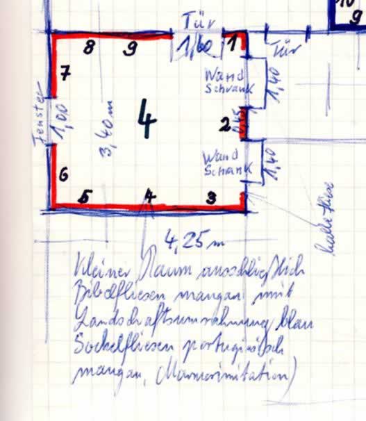 Diese Handskizze von Raum 4 fertigte Rainer Marggraf am 14.04.1987.