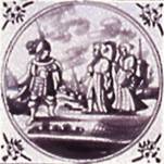 (Gemeentearchief Rotterdam Inv.Nr. 3195-49)Die der Vorlage aus dem Rotterdamer Musterbuch Nr. 49 entsprechende Szene ‚Der Judaskuss’(NT 23, Matthäus 26:49) gibt es im Raum 4 auf 9 Fliesen.
