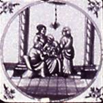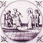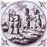 (Gemeentearchief Rotterdam Inv.Nr. 3195-14)Die der Vorlage aus dem Rotterdamer Musterbuch Nr. 14 entsprechende Szene ‚Jesus und die beiden Emmausjünger’ (NT 31, Lukas 24:30-31) gibt es im Raum 4 auf 8 Fliesen.