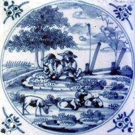 2. Landschafts- und Hirtenfliesen im Doppelkreis,