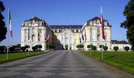 3 Balthasar Neumann (* 27. Januar 1687 in Eger - + 19. August 1753 in Würzburg). In der Zeit zwischen 1740 und 1746 schuf er das Treppenhaus von Schloss Augustusburg und 1745 den Hochaltar der Brühler Schlosskirche St. Maria von den Engeln.