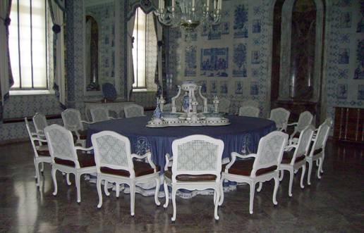 Zu Diners des kurfürstlichen Hofes stand spätestens seit Mitte der 1740er Jahre der mit seinen weiß-blauen Fliesendekorationen prunkende Sommerspeisesaal zur Verfügung.