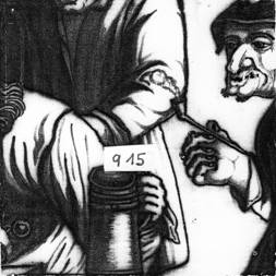 Als Vorlage ist eine Radierung von Adriaen van Ostade (11) verwendet (Abb. 17). Aus dieser umfassenden Szenerie mit einer Vielzahl an Figuren, die einem tanzenden Bauernpaar zuschauen, wählte der Fliesenmaler die verhältnismäßig kleine Hauptszene aus. Auch die lauernde Katze im Vordergrund findet sich in der Radierung.
