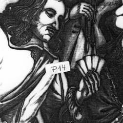 Vergleich von Fotokopien der Fliesen P14 aus dem Tableau 2 (Nordwand) und J14 aus dem Tableau 5 „Tric-Trac-Spieler“(Südwand)