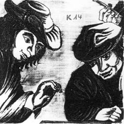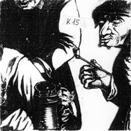 Mir sind das Urbild für die Szene der Kartenspieler und auch die graphische Vorlage noch nicht bekannt.