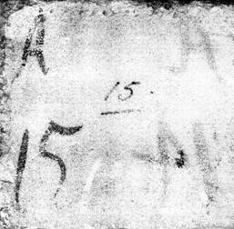 Vergleich von Rückseiten der Fliesen q15 aus dem Tableau 1 (Nordwand) und K15 aus dem Tableau 5 (Südwand)