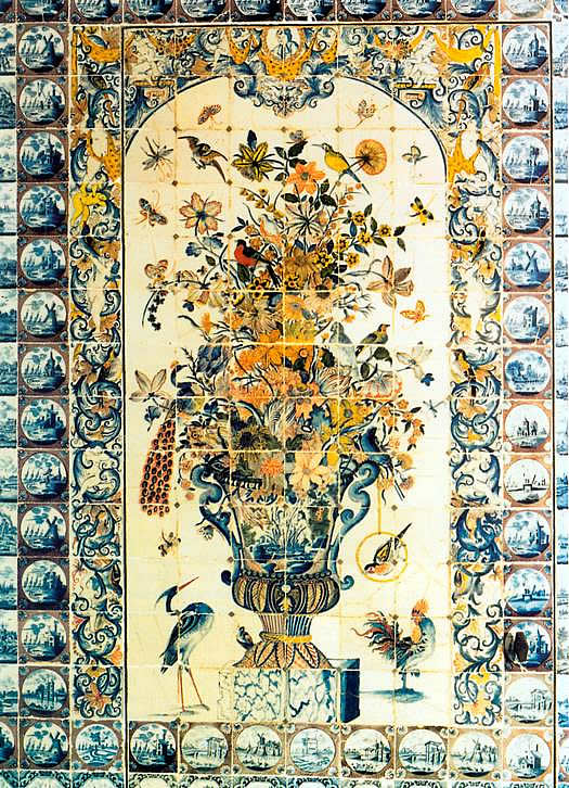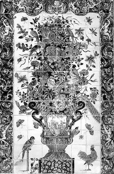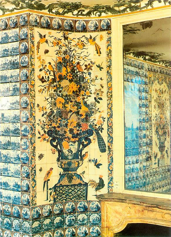 Grote veelkleurige bloemvaastableaus (afb.l) zijn sinds een publicatie van Robert Danis (1) onder de aandacht gebracht. In zijn boek beschreef hij de tegels welke aan de wand, op de vloer en zelfs als dakbedekking van het "Trianon de Porcelaine" (1671-1687) te Versailles waren toegepast. Danis probeerde de "Chambre de Diane", zoals deze gepubliceerd was door Félibien (2) in 1673, te reconstrueren (afb.2).