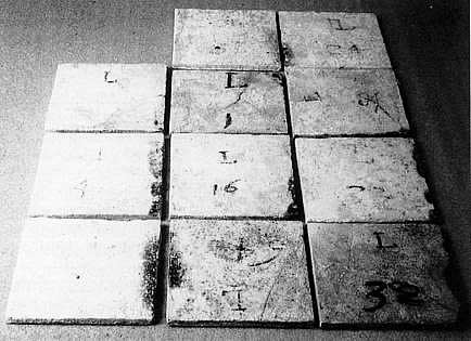 afb.11) Achterkant van enkele tegels uit het tableau van afb.9 met de letter L midden en daaronder