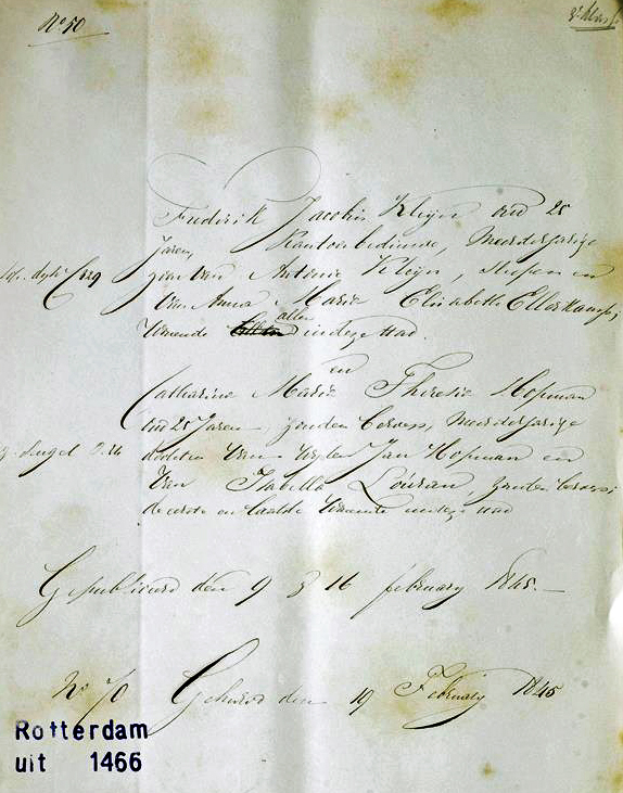 heiratete Frederik Jacobus Kleijn die am 15-03-1819 in Rotterdam geborene