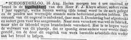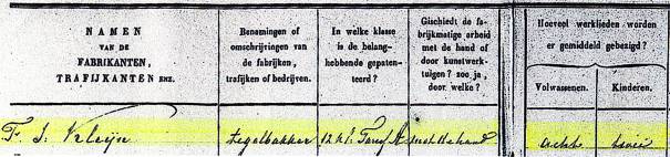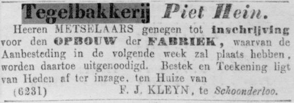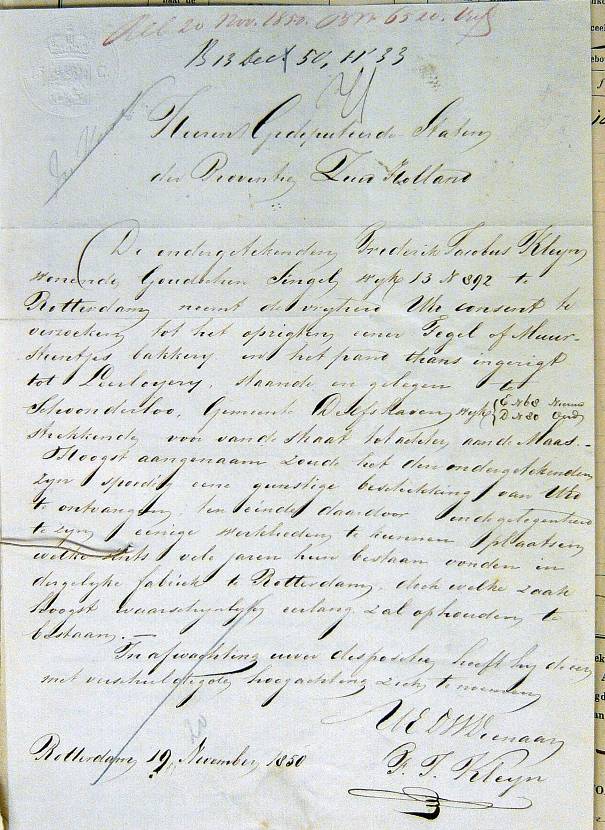 Frederik Jacobus Kleijn zur Errichtung einer Fliesenmanufaktur in Schoonderloo,