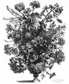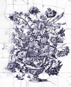 The engraving of a vase with flowers made by the Amsterdam print maker Carel Allard served as the design source for the Bloempot tiled factory sign.In ‘The Bloempot Factory Sign in Rotterdam’ I referred to three tile panels based on an engraving by Carel Allard (1648-1709) in a fireplace in John Knox House in Edinburgh.