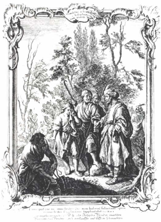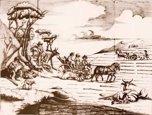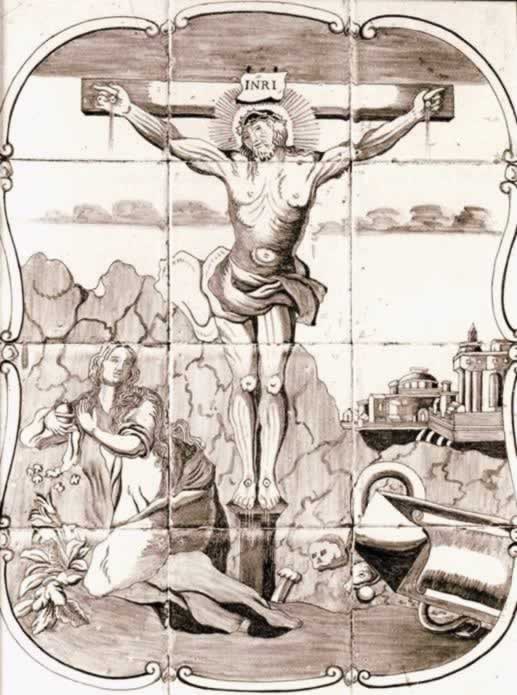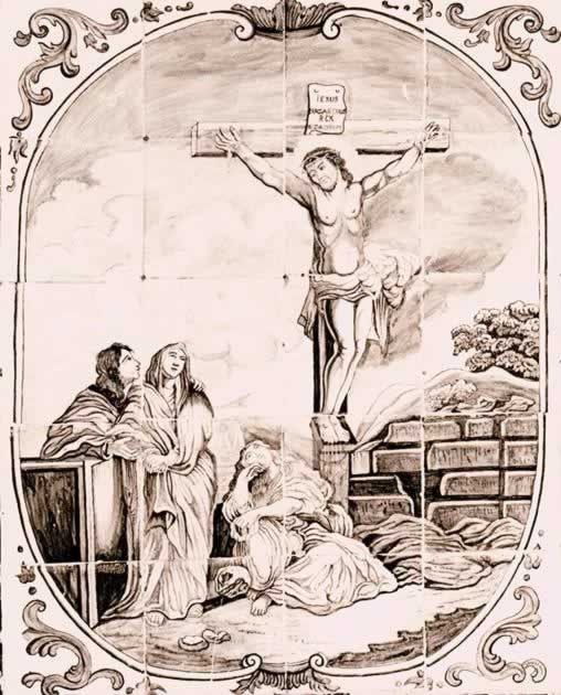 The engraving made by the print maker Kilian served as the design source for this tile panel.