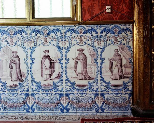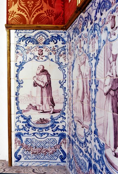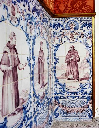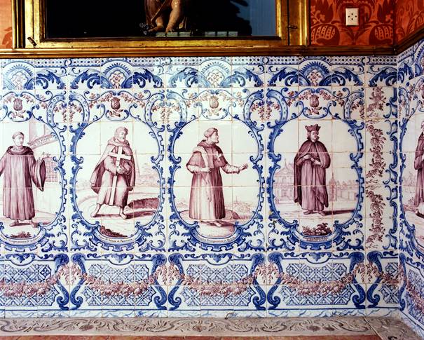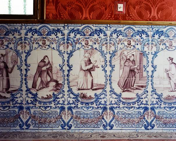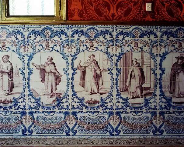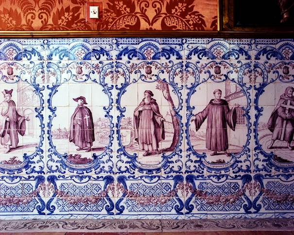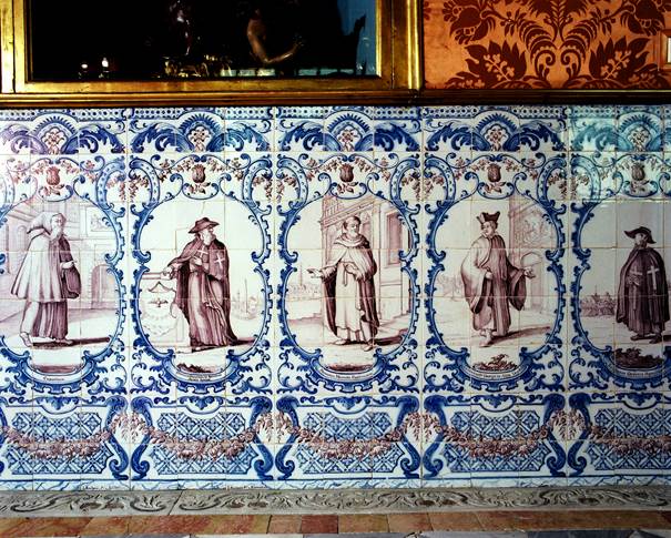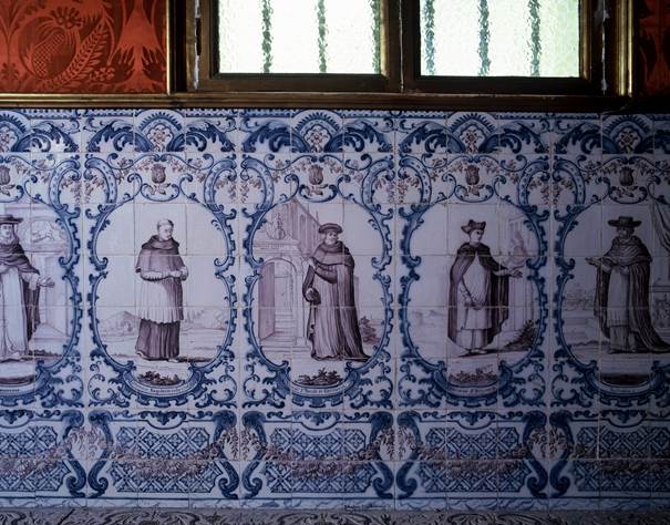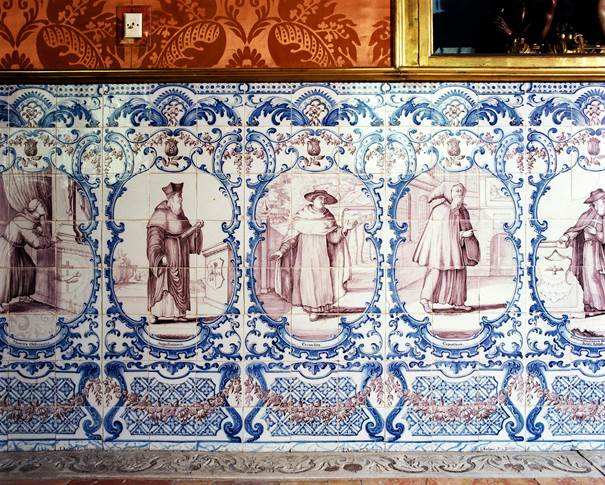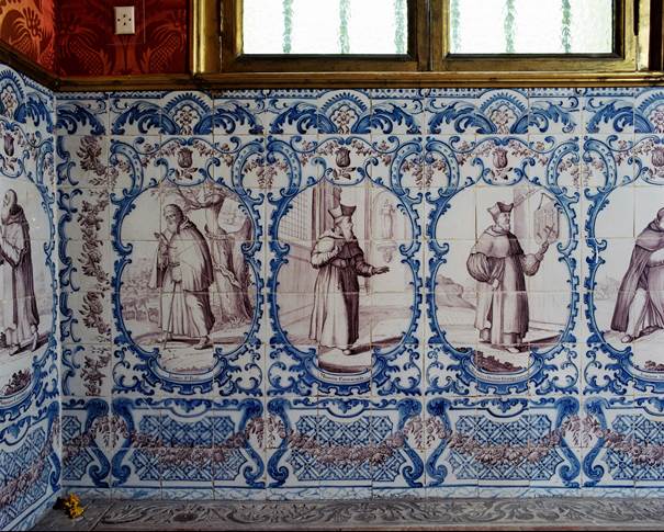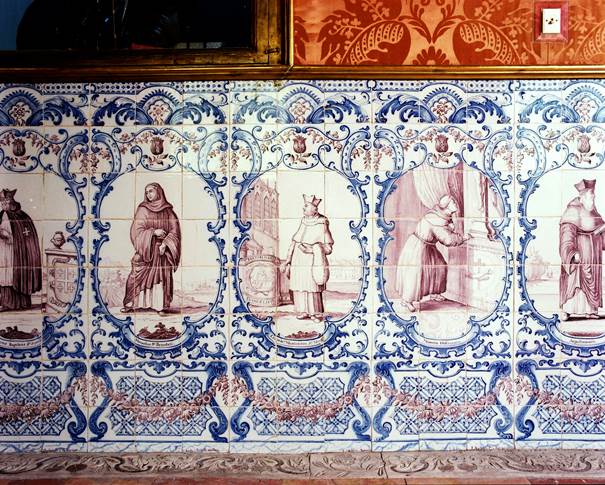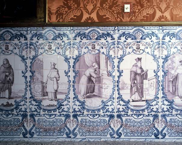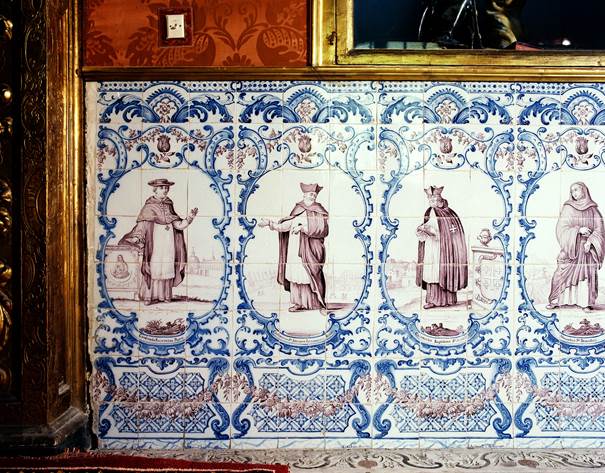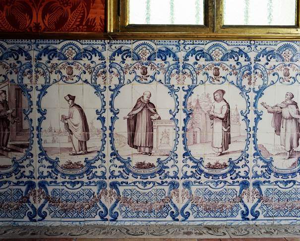 achtunddreißig Fliesenbildern mit Darstellungen von Ordensgeistlichen und