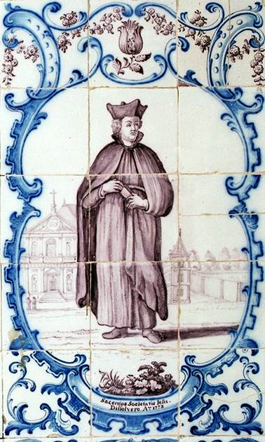 Fliesen) ist ein Mönch oder geistlicher Würdenträger dargestellt, in einem für
