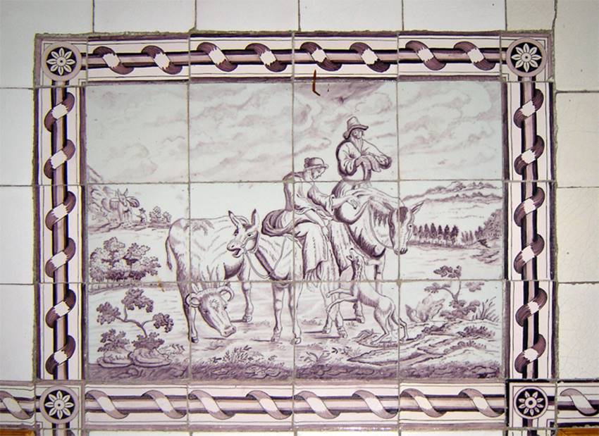 Fliesengemälde mit pastoraler Szene in der Küche des Hauses