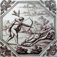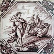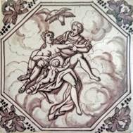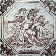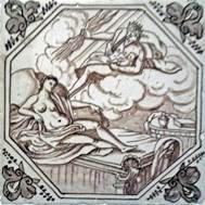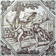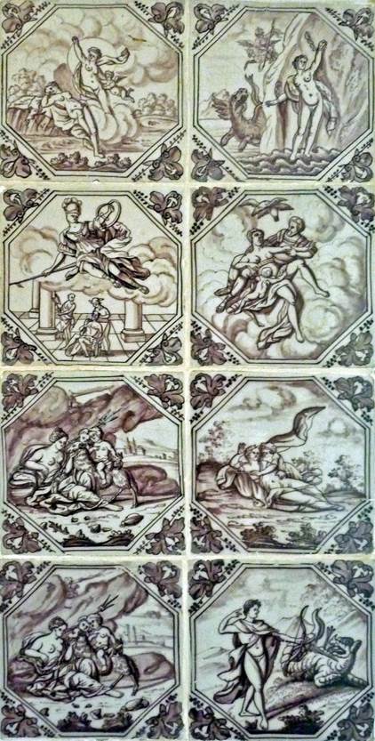 bemalten Fliesen. Fünfzehn dieser Fliesen zeigen mythologische Szenen nach Ovid