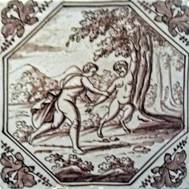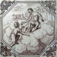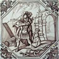 und eine Fliese (06) eine Szene aus dem Alten Testament.