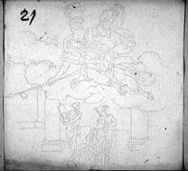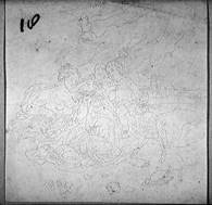 braun gezeichet, grau gewaschen und zur Anfertigung von Durchstaubschablonen