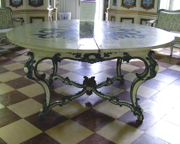 Sehr schön sind die bemalten Türblätter. Vermerk des Tiroler Malers J.A. Gumpp: "Verzeichnis, was ich zu Nimphenburg in dem Lusthaus vom Juni 1717 bis 1718 gemacht hab', .... alles von schön berliner blau mit allerlej indianische Figuren gemahlt 196,--fl."
