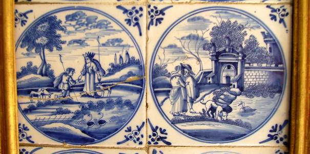 Niederländische Bibelfliesen nach graphischen Vorlagen des Pieter Hendriksz. Schut in der Küche der Amalienburg