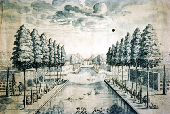 GANZENHOEF; Gesigt over haer groote Vyver naer agteren