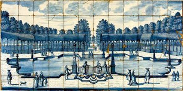 De tableaus geven een kijkje langs de Vecht te zien naar prenten uit het bekende boek „de Zegepraalende Vecht“ dat in het jaar 1719 is verschenen.