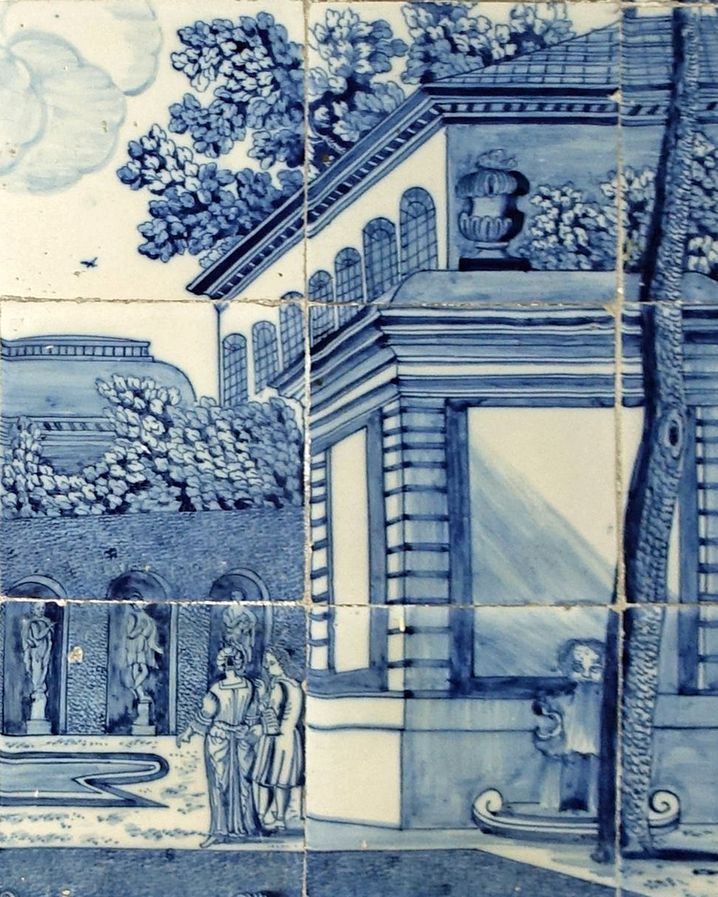 De tegeltableaus zijn gebaseerd op de prenten van Daniel Marot uit de serie getiteld ‘Troisième Liure (Livre) de perspectives’.