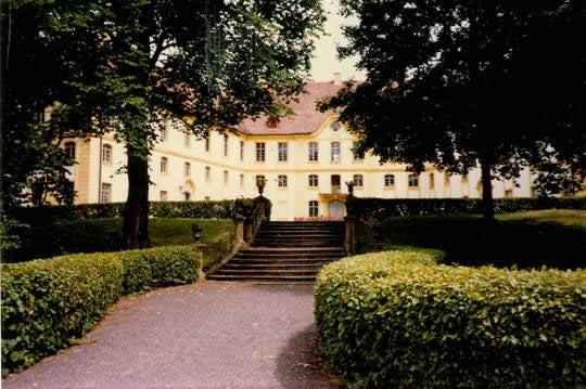 Das Schloss Rentweinsdorf bildet zusammen mit der protestantischen Kirche den Mittelpunkt des Marktes Rentweinsdorf.