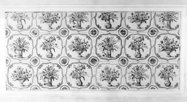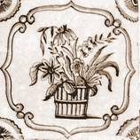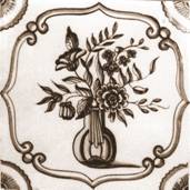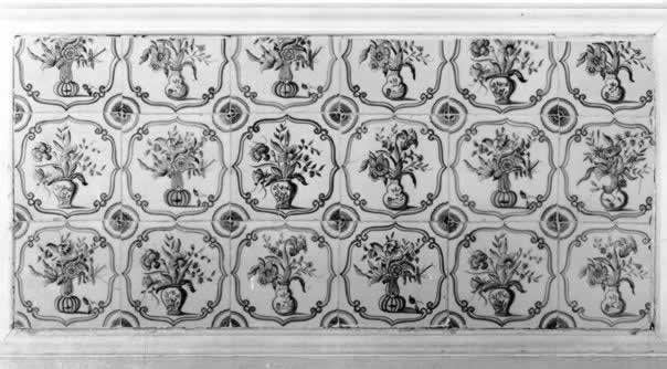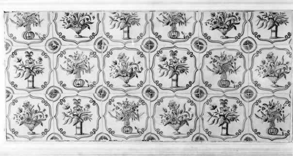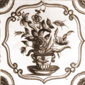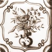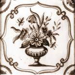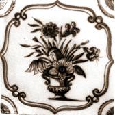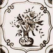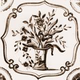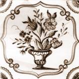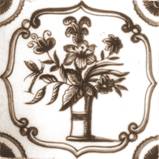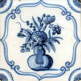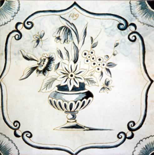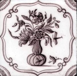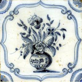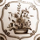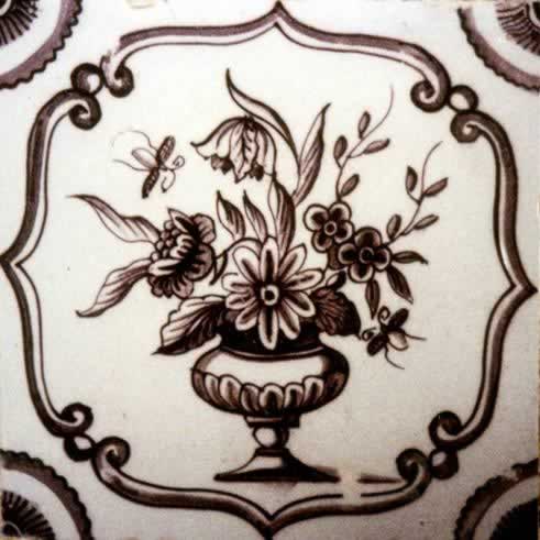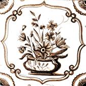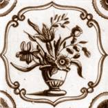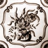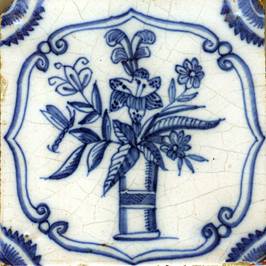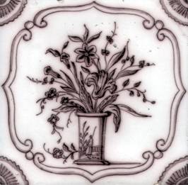 In einem Rotterdamer Werksarchiv (van Traa 1849) wurden diese Fliesen ‚Potjes met fransch bandje’ genannt. Die heutige korrekte Sammlerbezeichnung lautet ‚Bloempotje in accolades met krullen; hoekmotief: kwartrozet’.
